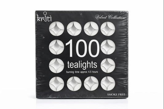 Kriti Set of 100 Tealights Candles | 4.5 Hour Long Burning | Ideal for Diwali, Pooja, Décor, Parties & Home Ambience