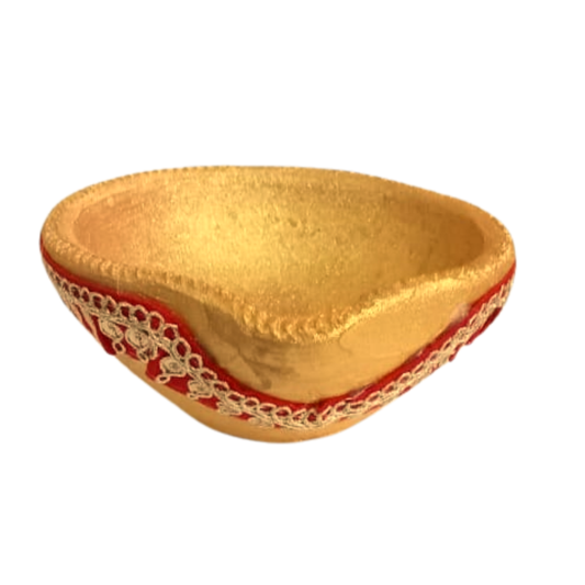 Kriti Creations Traditional Handmade Earthen Clay Big Size Diya for Laxmi Poojan Gold Colour