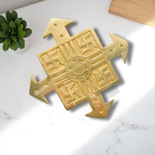 Kriti Creations Vastu Remedies Brass Four Direction Arrow with Swastik Plate Vastu Correction & Positive Energy (15x15x0.5cm)