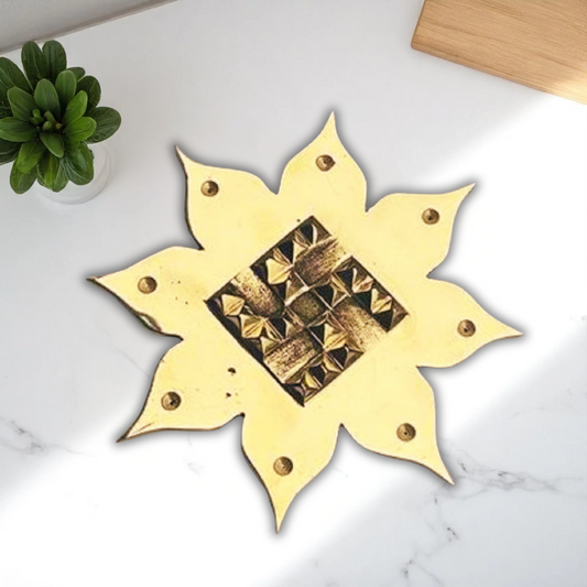 Kriti Creations Golden Swastik Brass Lotus Flower Plate with Pyramid for Vaastu Correction, For Vastu (14x14x0.05cm)