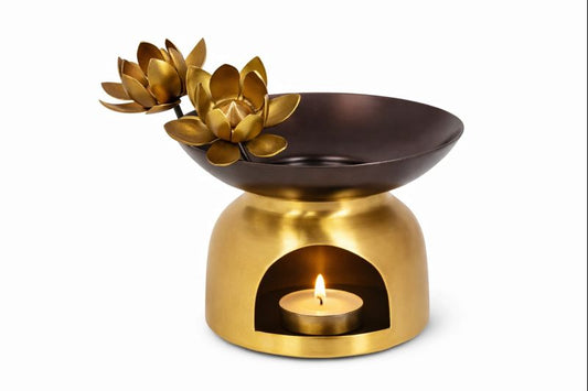 Kriti Creations Aroma Oil Lotus Brass Burner | Elegant Lotus Design Oil & Camphor Burner for Pooja, Meditation, Home & Spiritual Décor