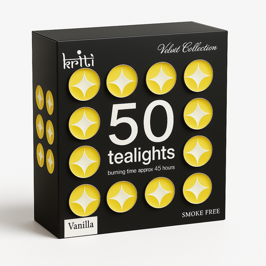Kriti Set of 50 Perfume Tea-Lights in A Pack (Vanilla) (Burning 4.5 Hour)