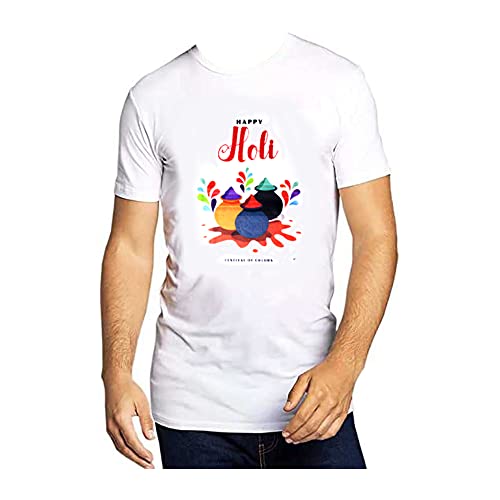 Kriti Creations Holi Printed T-Shirts Round Neck Polyester for Adults|Couple|Boys|Girls|Men|Women Colorfull Designs (Print May Vary)
