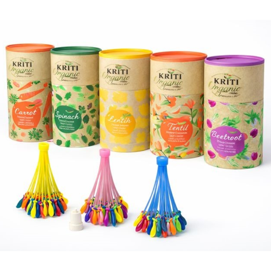 Kriti Combo Organic Water Colours Set of 5 (Carrot, Tesu, Beetroot, Laddoo, Spinach) 50g with Holi Water Bunch Balloons 111 Pcs